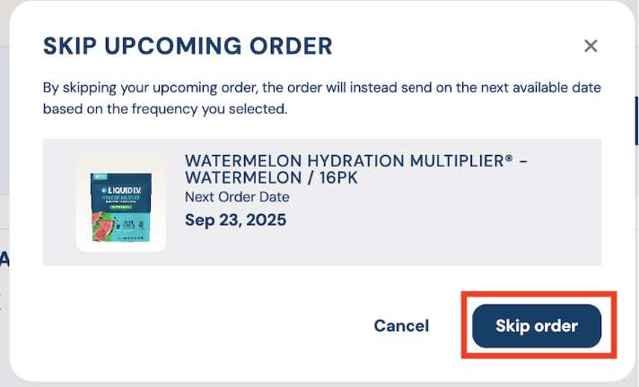 3. Click “Skip Order” to confirm this change